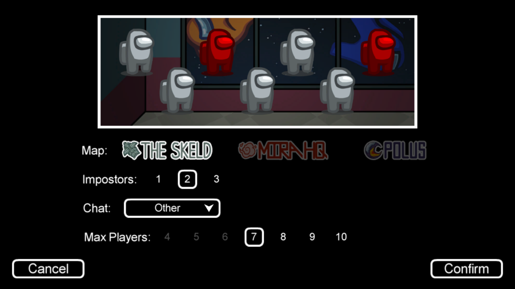6人まではインポスターが1人、7人以降はインポスターは2人を選択できます。