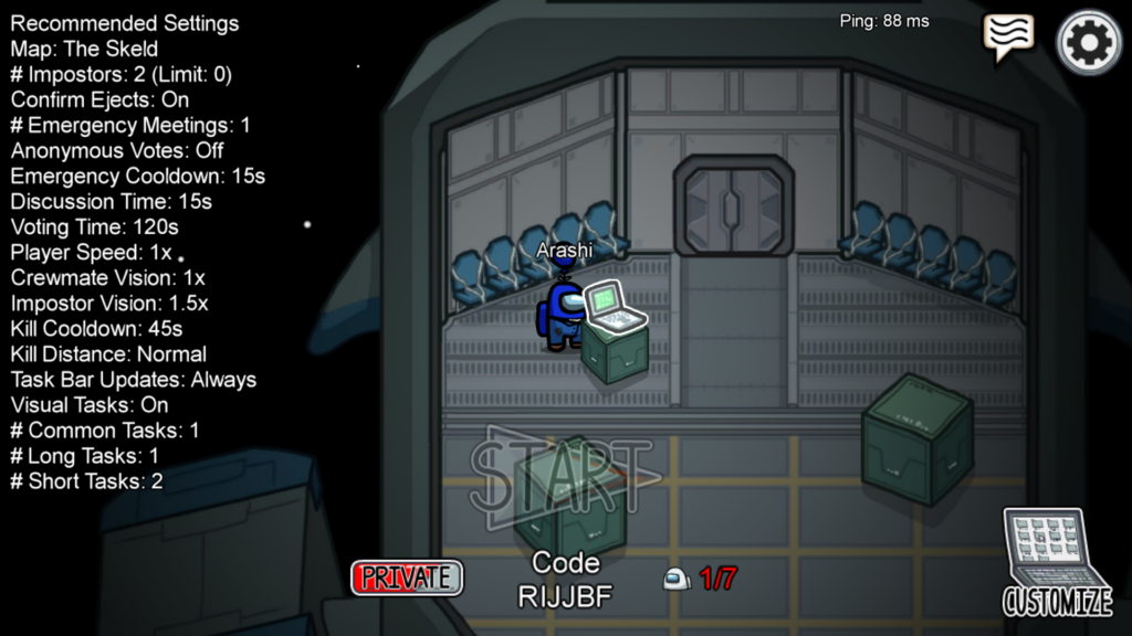 ゲームマップや人数を変更する場合は、一度ロビーを作成する必要があり違うコードをフレンドに送る必要があります。
