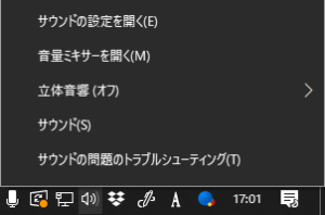 出力音量スライダーが0になっていないか確認し、十分な音量に調整