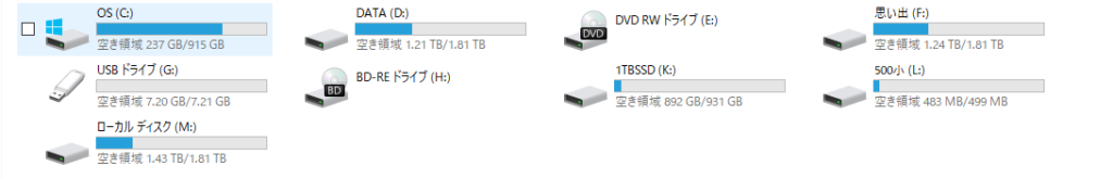 自分の接続されている使用可能なHDD、SSDが表示されます。