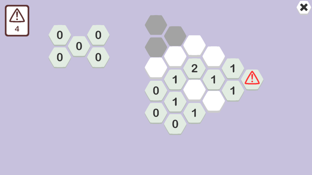 6角形のパネルをクリックし出てきた数字の分だけ周りに爆弾があるパネルがあります。