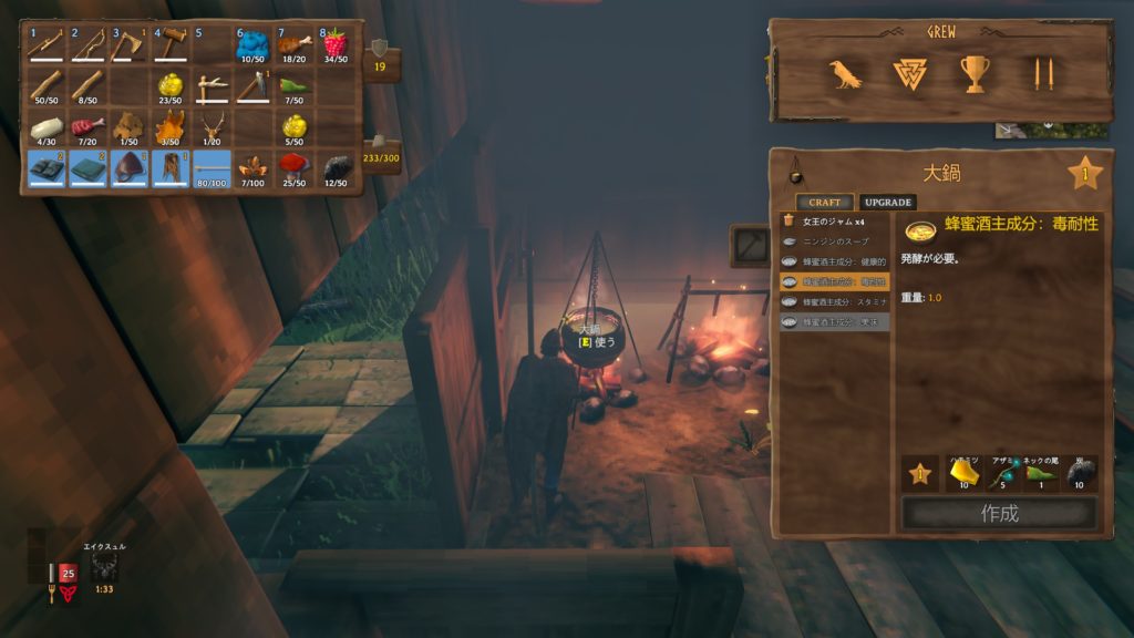 また、発酵樽は料理できた蜂蜜酒を発酵して食べるようにするために必要です。