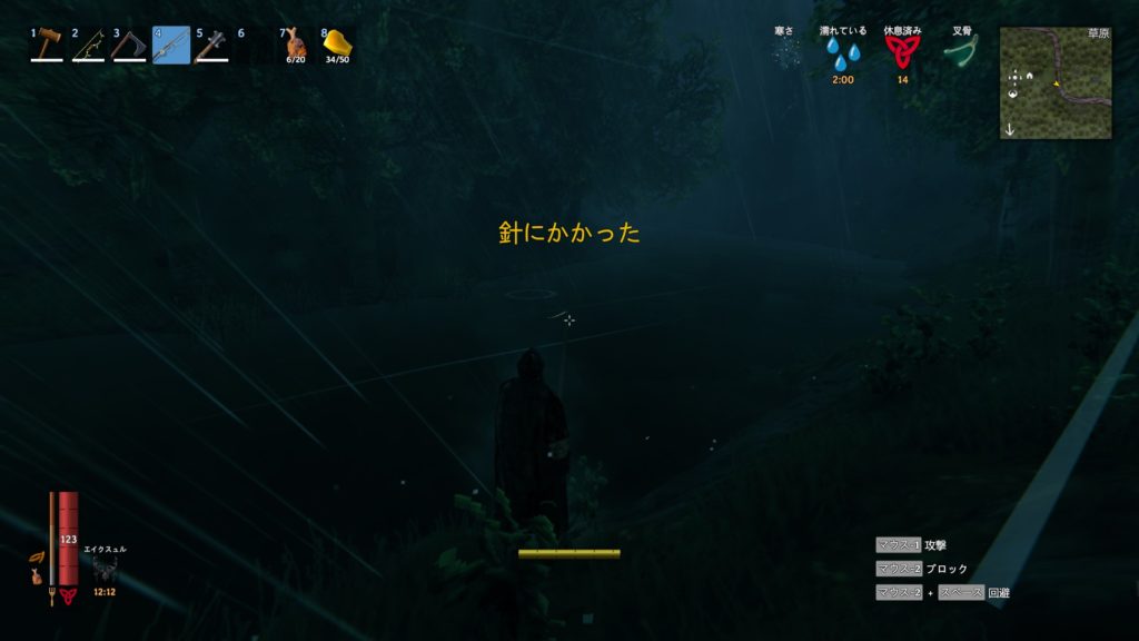 すると丸い飛沫が上がるので、上がった瞬間に右クリックで反応します。
