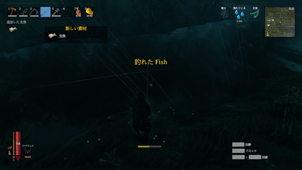 見事、釣りに成功すると釣れたフィッシュと表示されます。
