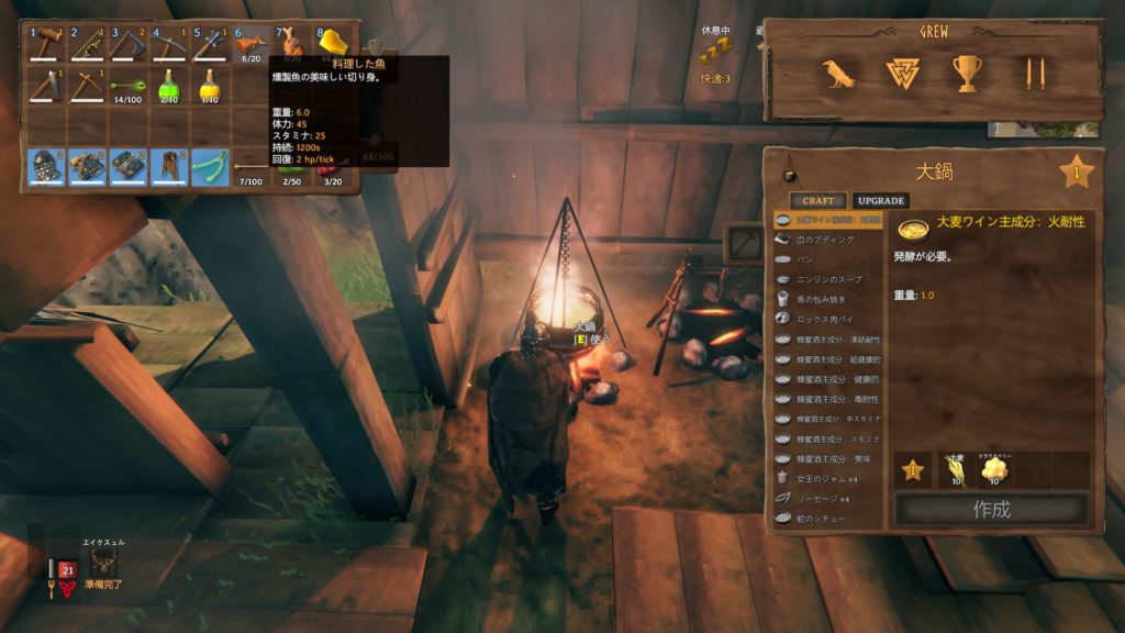 釣りをすることで終盤まで利用できる料理などを制作できます。