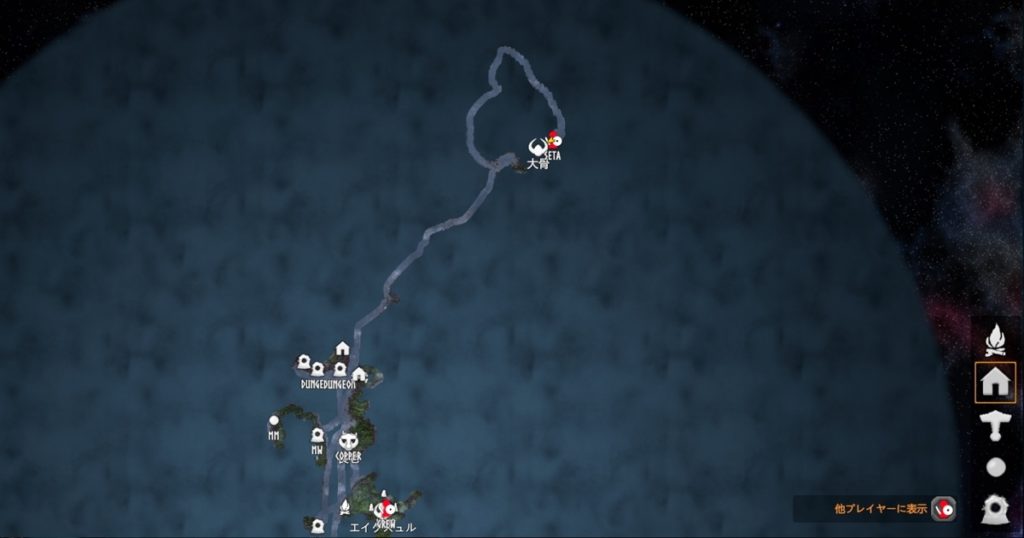 平地に囲まれた位置にいたので苦労しました(大骨(ボス)は複数いるが、そこから一番近い1匹が表示される)