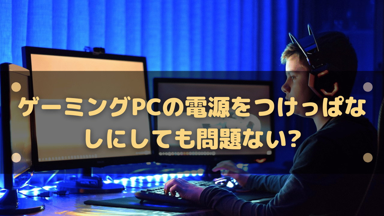 ゲーミングPCの電源はつけっぱなすにしても問題ないのか、つけっぱなしにすることでどんなメリット・デメリットがあるのか解説していきます。