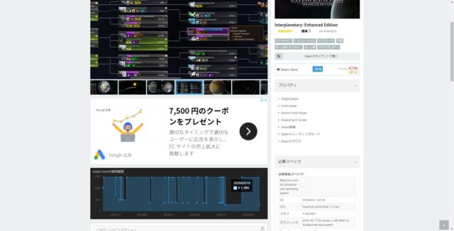 クリックするとゲームが画像と最安値のグラフを見ることが可能です。