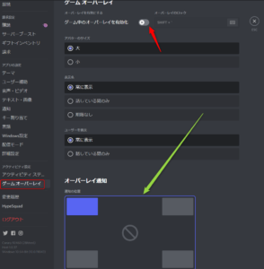 Discord更新後にオーバーレイ設定がオフになっていないか
