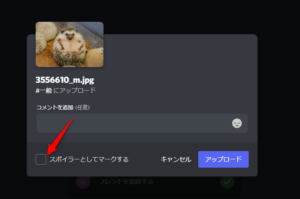画像と動画をネタバレ防止をするには、アップロードする際に設定を行う必要があります。