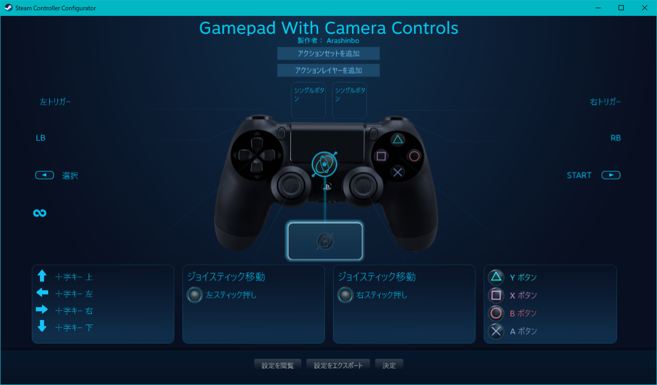 Steam Inputを利用すると、ゲームごとに細かなボタン配置やスティック感度を変更できます。