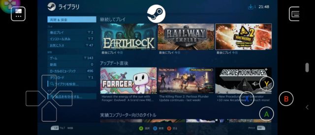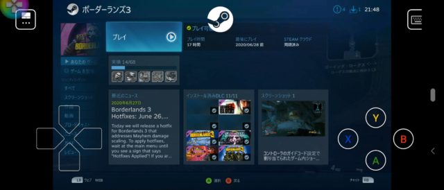 ホーム画面からBig PictureモードでSteamが操作ができます。 パソコン側もこの画面になっています。