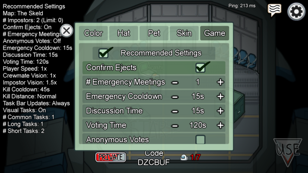 追放画面でインポスターかどうかの表示、タスクバーの表示(投票のみ)、匿名投票がおすすめです。
