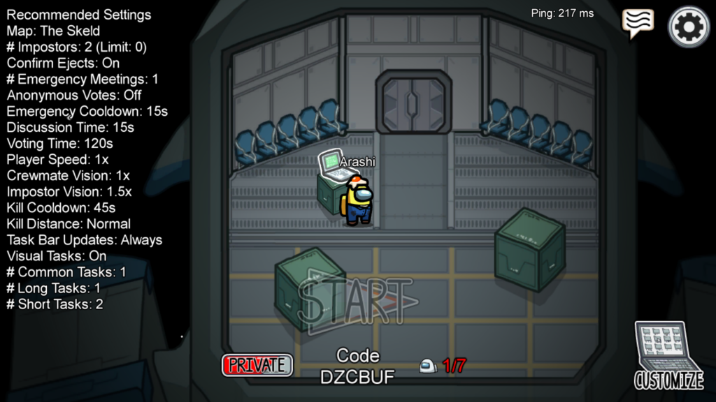慣れてきて、すぐにクルーかインポスターが判断できてしまう場合は変更していきましょう!