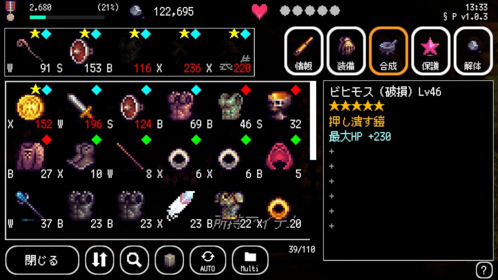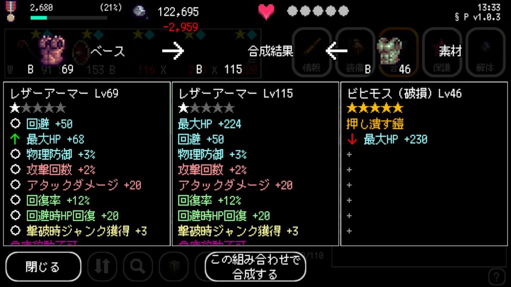 装備の合成を説明します。