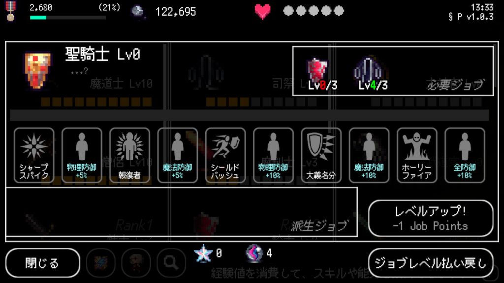 このようになりたい上位職があれば下位のジョブを上げていきましょう。
