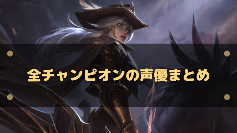 LoL(League of Legends)の全チャンピオンの声優をまとめました。 日本語吹き替えの担当声優を記載しています。 元々は不明でしたが10周年を記念して発表されました。 全チャンピオンの声優一覧 アーゴット:武虎 アーリ:小林沙苗 アイバ […]
