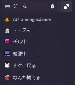 「オンライン」「退席中」「取り込み中」「オフライン」といった“オンライン状態”はDiscordの公式機能として別に存在します。