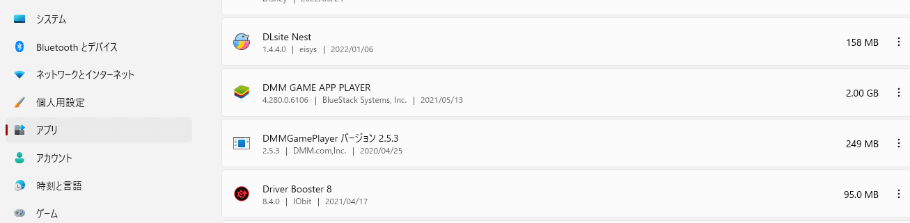 DMM GAME PLAYERをアンインストールする方法は設定を開いてアプリ、アプリと機能からDMM GAME PLAYERをアンインストールします。