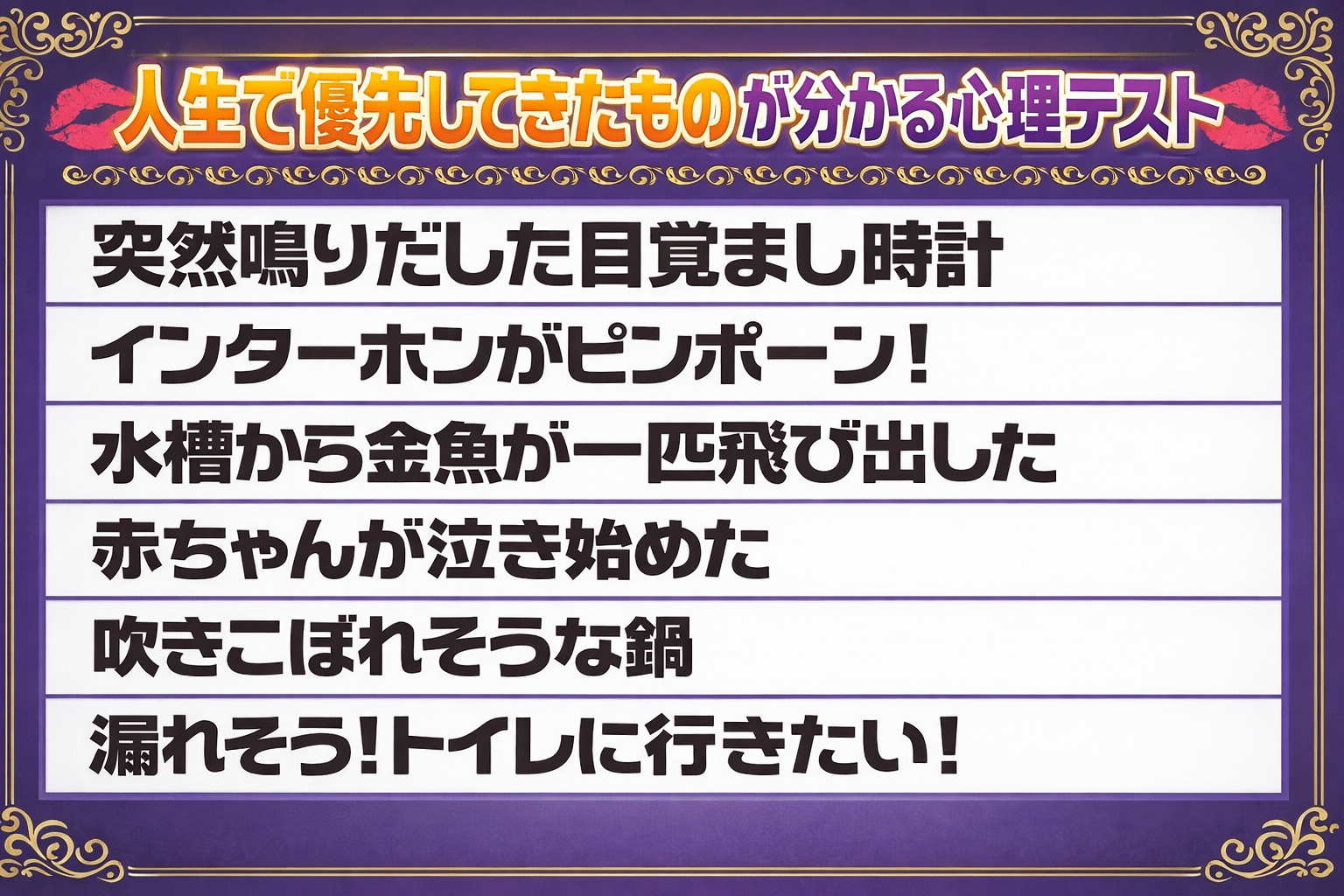 雑談のネタを探している方も、放送内容をもう一度整理したい方も、この記事を読めば安心して心理テストを再現できるようになります。