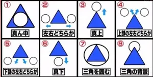 • 問題:三角形の絵に○(丸)を1つ付け足す(どこに置くか)