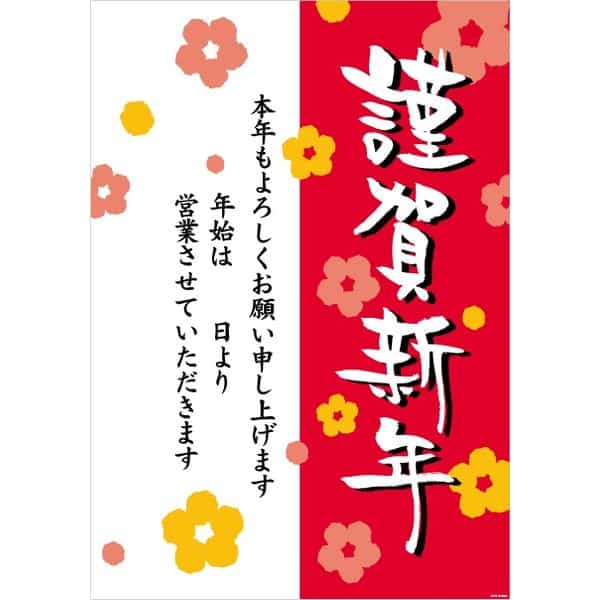年始の挨拶ポスターはシンプルに大きく掲示し、休業案内は別紙で具体情報を載せます。視認性と読みやすさを両立でき、掲示の見栄えも整いやすい方法です。