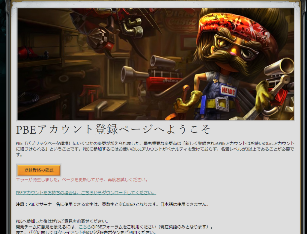 LoL(League of Legends)でPBE(パブリックベータ環境)でプレイするためのアカウント作成、登録からインストール方法までまとめました。