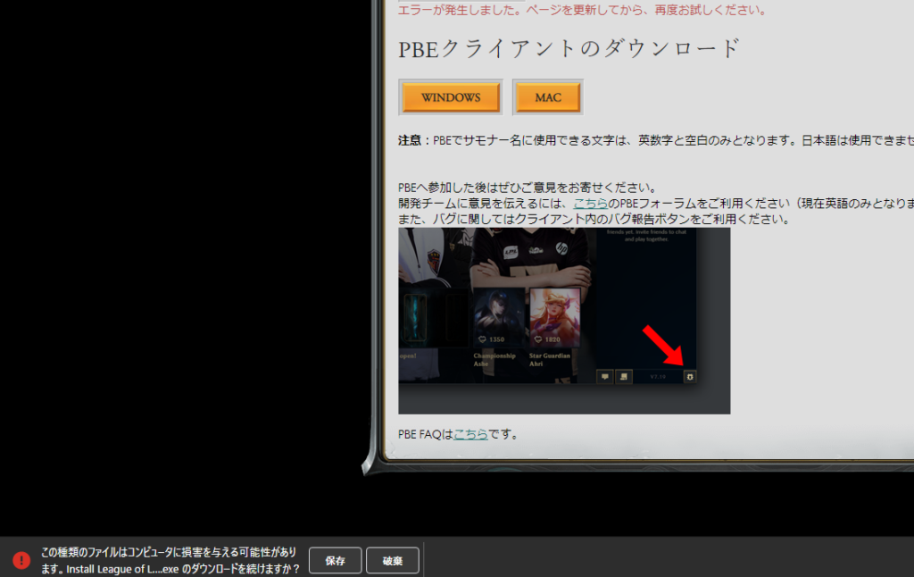 ページ下にあるPBEアカウントをお持ちの場合は、こちらからダウンロードしてください。