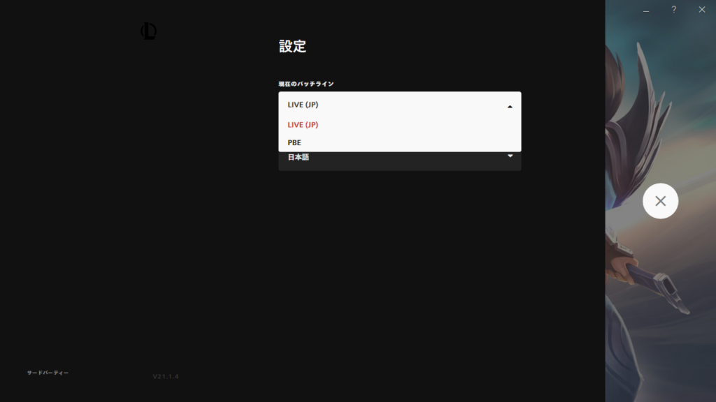 インストールがしっかり完了すれば、サインインにある設定からパッチラインを今のパッチかPBEか選択が可能です。