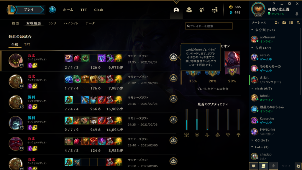 注意としてパッチが変更されると変更前の試合を保存できなくなるので、パッチ変更前には確認しておきましょう。