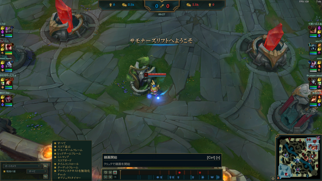 LoLのリプレイで出来ることは試合の確認、リプレイの作成です。