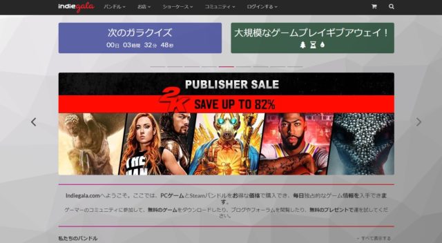 インディーズ系の安いゲームのバンドルを多く販売しているサイトになります。