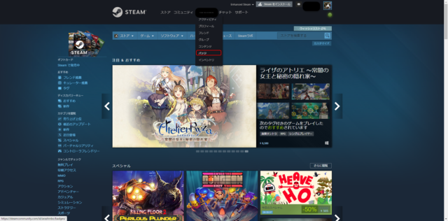 ここからは、ブラウザのSteamを元に説明します。 元になるトレーディングカードを入手している前提で書いています。