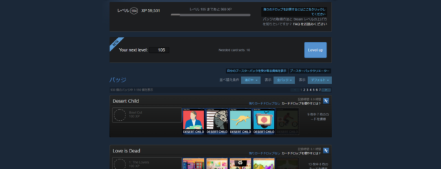 レベルはバッジによりレベルアップします。 バッジは主にゲームで手に入るトレーディングカードを一定数集めることで入手できます。トレーディングカードでのレベルの上げ方はこの記事の下記に書いてあります。 簡単なトレーディングカードの集め方はツールを使用することです。