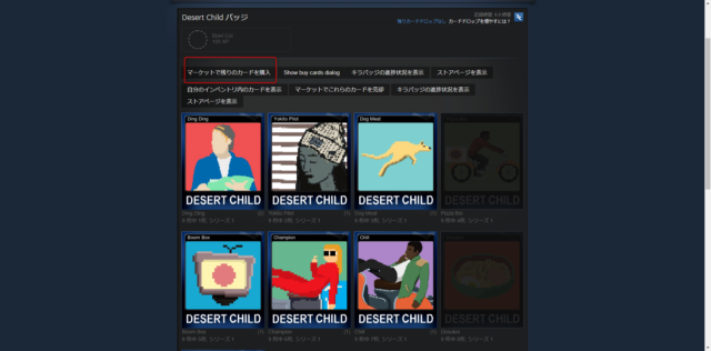 完成させたいゲームのバッジをクリックします。 マーケットで残りのカードを購入をクリック。