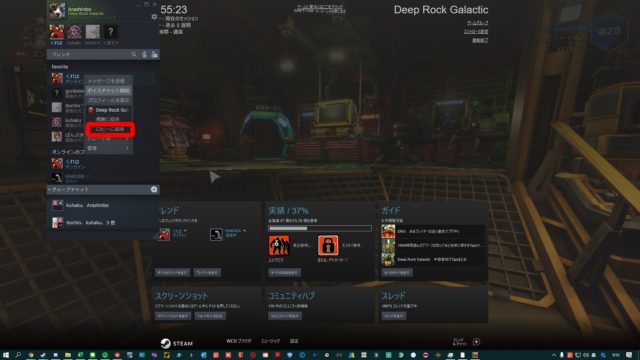※先に一緒にプレイするフレンドとSteamでフレンド担っておく必要がありますので、まだフレンド登録していな人はフレンドになっておきましょう。