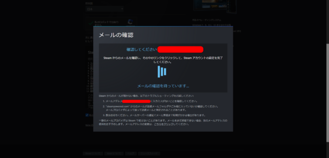 このウィンドウを消さないようにして、新しいウィンドウかメーラー(メールソフト)で登録したメールアドレスの受信ボックスを確認します。