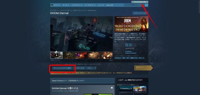 追加したゲームは、右上のウィッシュリストをクリックすることで確認可能です。
