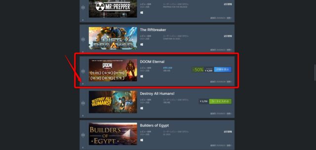 ゲームの名前をクリックすると、ストアページに行くことができます。