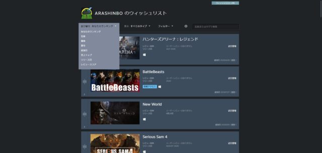 気になるゲームが表示されれば、ウィッシュリストに追加します。