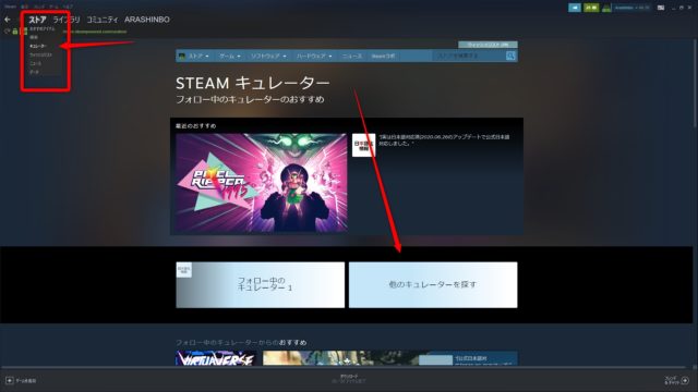 Steamで新しいゲームを探すときに便利なキュレーター、探索とウィッシュリストの使用方法・活用方法を紹介します。
