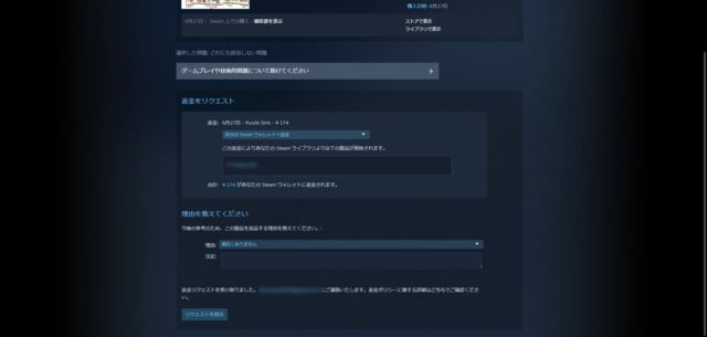 なお、14日・2時間の条件を外れていても、返金リクエスト自体を送ることは可能です。その場合は個別に審査されるため、必ず返金が通るわけではありませんが、「動作不良でほとんど遊べなかった」など正当な理由がある場合、認められるケースもあります。
